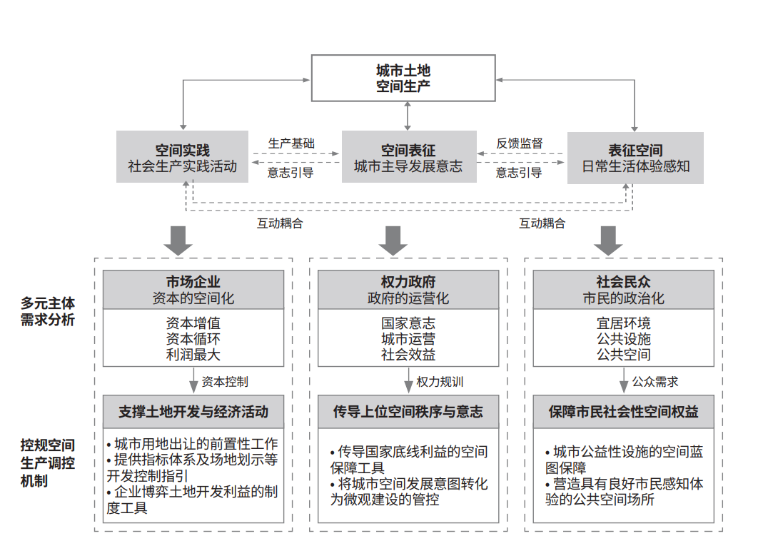 将我国城市土地空间置于空间生产分析框架进行分析,有助于了解城市空间背后的资本运作方式,以及多元主体权力博弈对城市空间重构产生的影响,进而探究控规在空间生产视角下的运作机制。